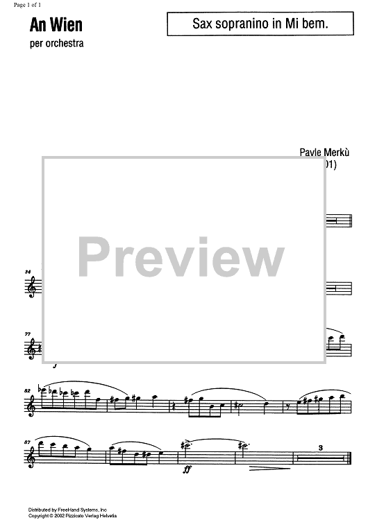 Digital Sheet Music for AnWien - Sopranino Saxophone by , Pavle Merkù scored for Orchestra; id:351114