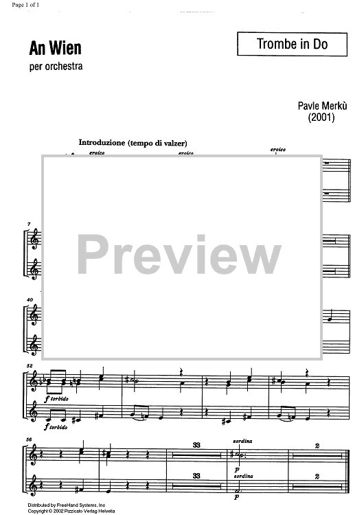 Digital Sheet Music for AnWien - Trumpet in C 1 by , Pavle Merkù scored for Orchestra; id:351118