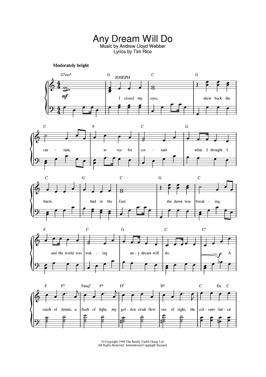 Digital Sheet Music for Any Dream Will Do by Andrew Lloyd Webber, Tim Rice scored for Easy Piano; id:382804