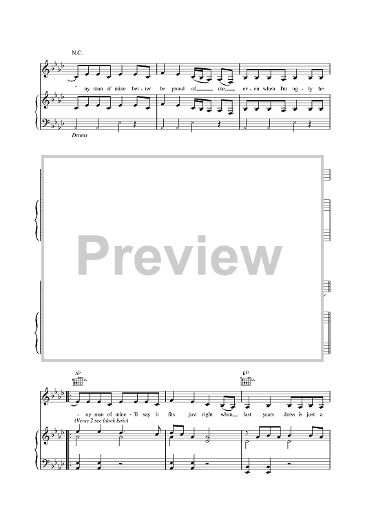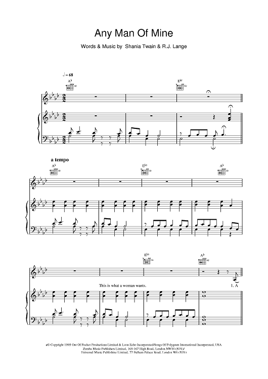 Digital Sheet Music for Any Man Of Mine by Shania Twain scored for Piano/Vocal/Chords; id:376917