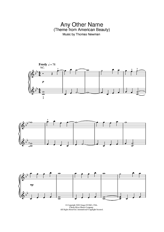 Digital Sheet Music for Any Other Name by Thomas Newman scored for Piano/Vocal/Chords; id:385989