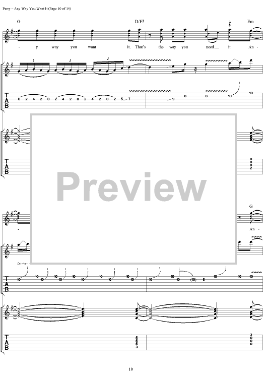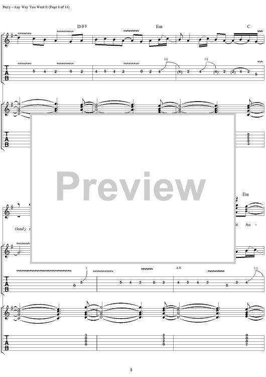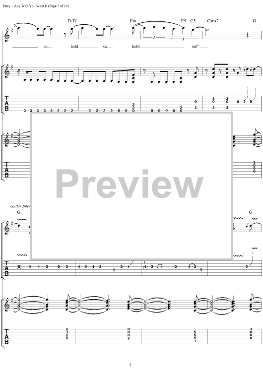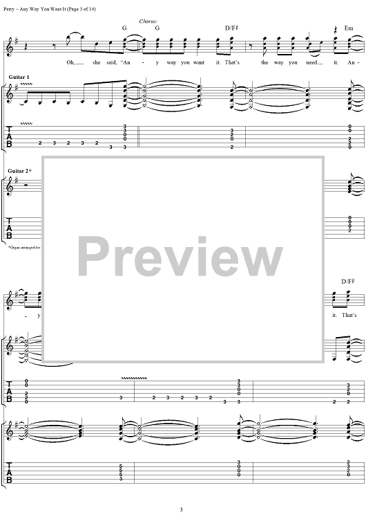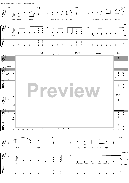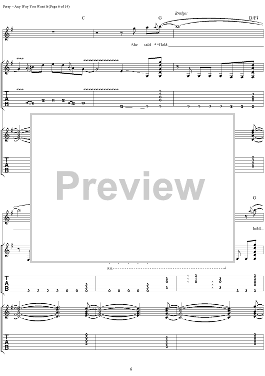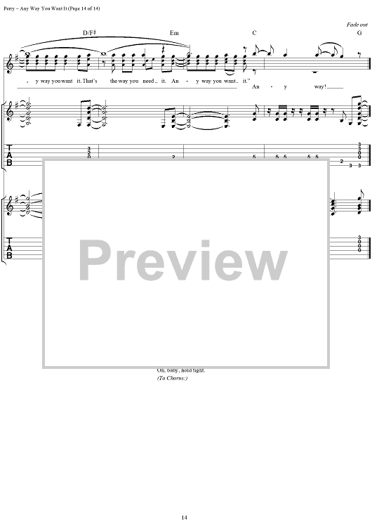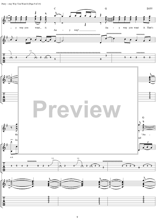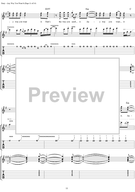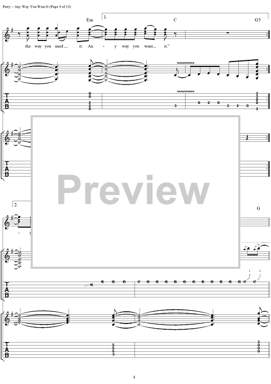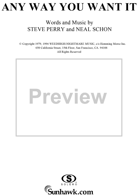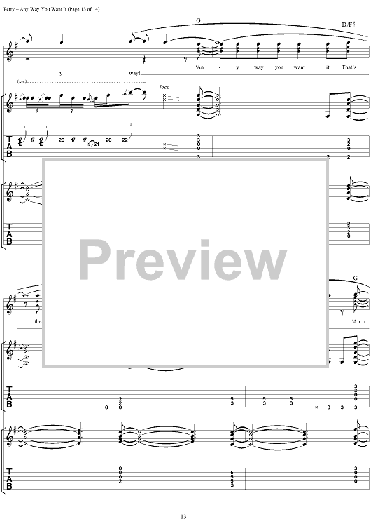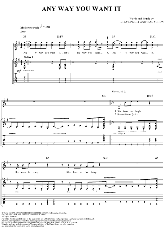 Digital Sheet Music for Any Way You Want It by Steve Perry, Neal Schon, Journey scored for Guitar Tab/Vocal; id:113548