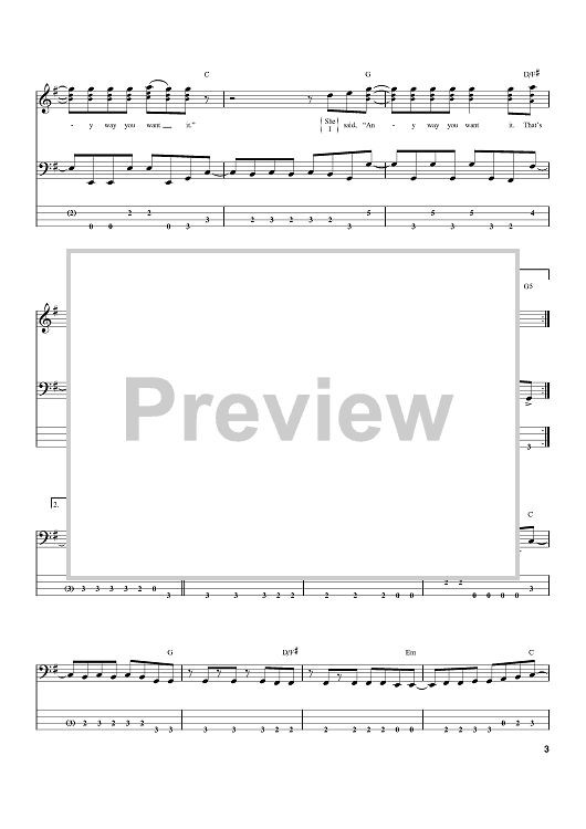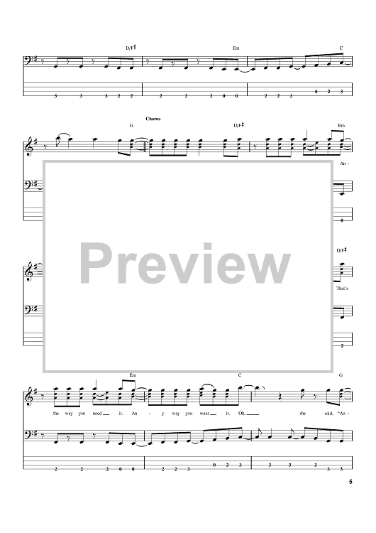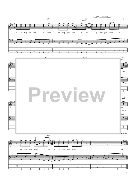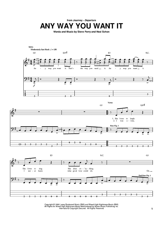 Digital Sheet Music for Any Way You Want It by Steve Perry, Neal Schon, Journey scored for Bass Tab; id:392676