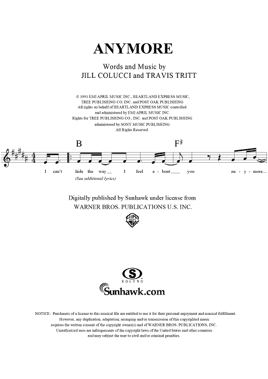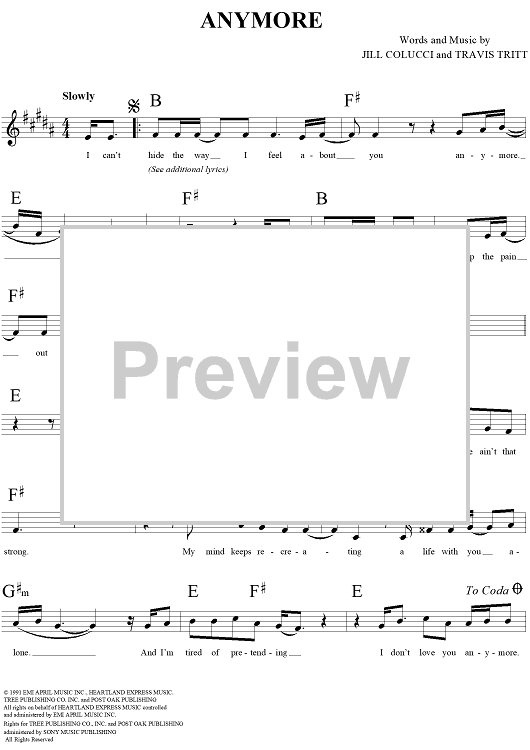 Digital Sheet Music for Anymore by Travis Tritt, Jill Colucci scored for Lead Sheet; id:272656
