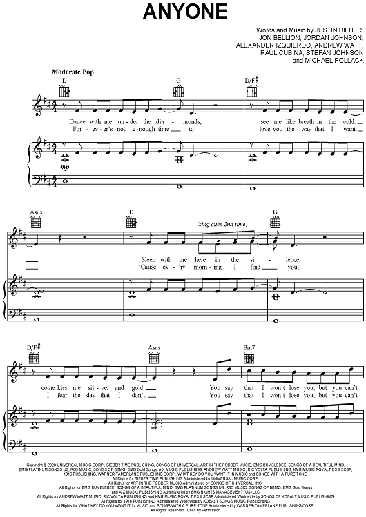 Digital Sheet Music for Anyone by Justin Bieber, Jordan Johnson, Stefan Johnson, Alexander Izquierdo, Raul Cubina, Jon Bellion, Michael Pollack, Andrew Watt scored for Piano/Vocal/Chords; id:468829