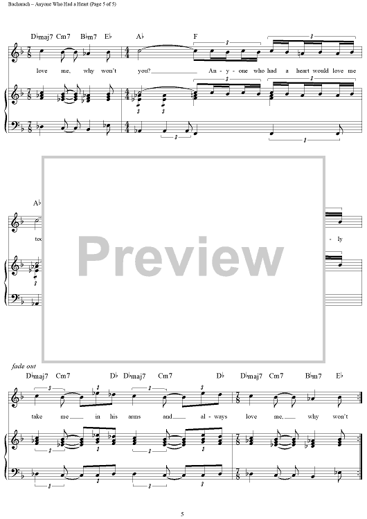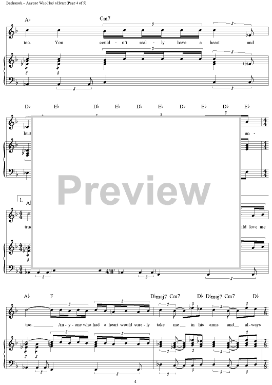 Digital Sheet Music for Anyone Who Had a Heart by Hal David, Burt Bacharach, Dionne Warwick scored for Piano/Vocal/Chords; id:124150