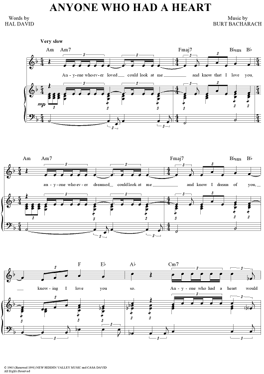 "Anyone Who Had a Heart" Sheet Music by Burt Bacharach