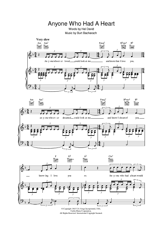 Digital Sheet Music for Anyone Who Had A Heart by Hal David, Burt Bacharach scored for Piano/Vocal/Chords; id:393139