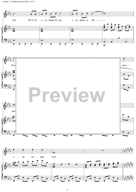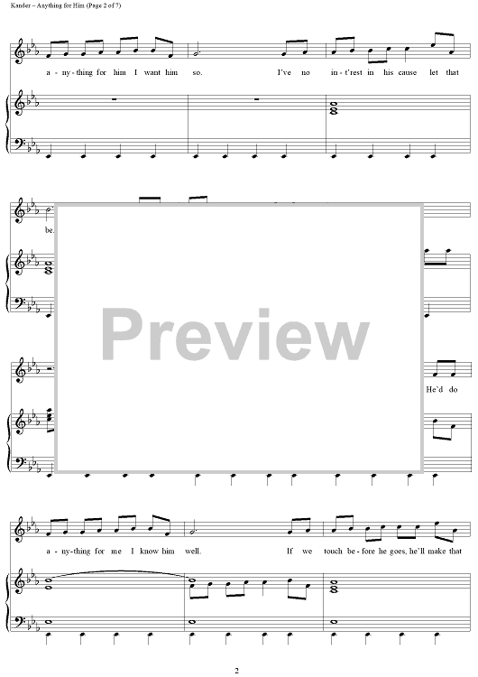 Digital Sheet Music for Anything For Him by John Kander, Fred Ebb scored for Piano/Vocal; id:234601
