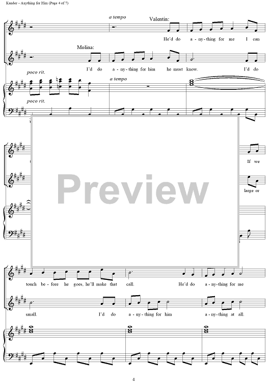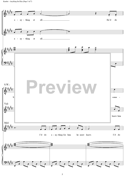 "Anything For Him" Sheet Music by John Kander