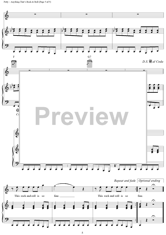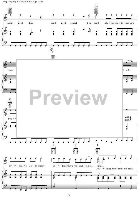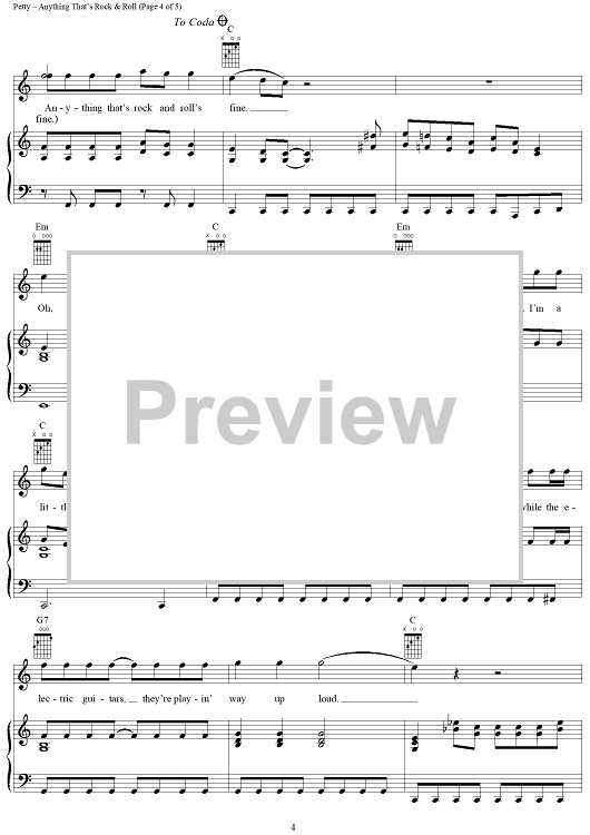 Digital Sheet Music for Anything That's Rock & Roll by Tom Petty scored for Piano/Vocal/Chords; id:367587