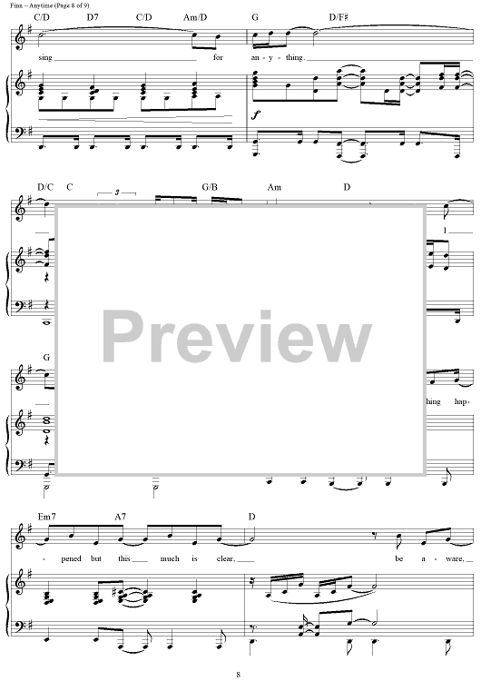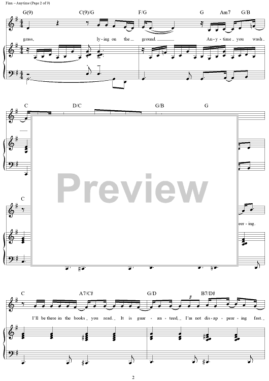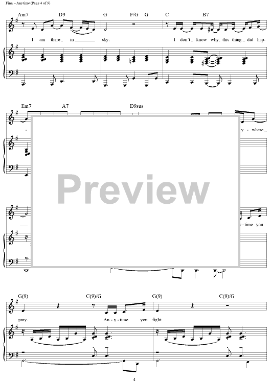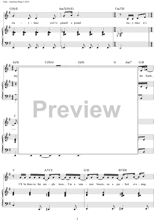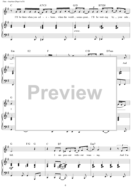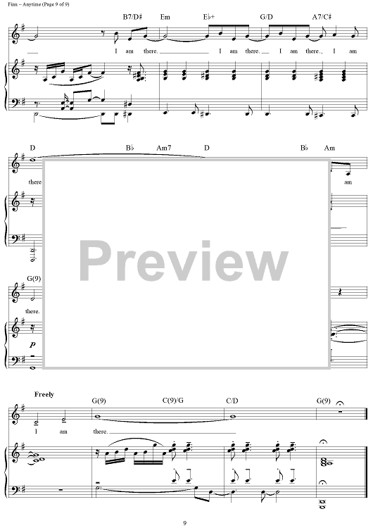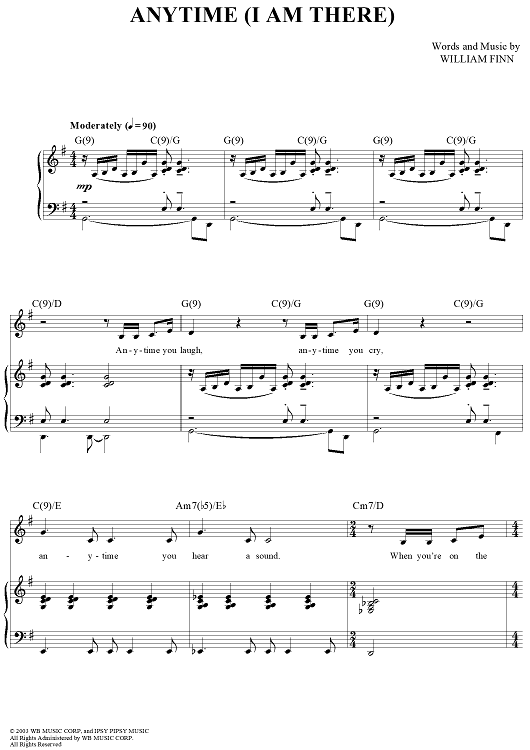 Digital Sheet Music for Anytime (I Am There) by William Finn scored for Piano/Vocal/Chords; id:360038