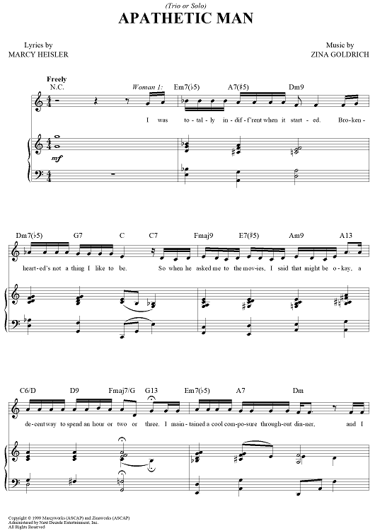 Digital Sheet Music for Apathetic Man by Goldrich & Heisler scored for Piano/Vocal/Chords; id:449953
