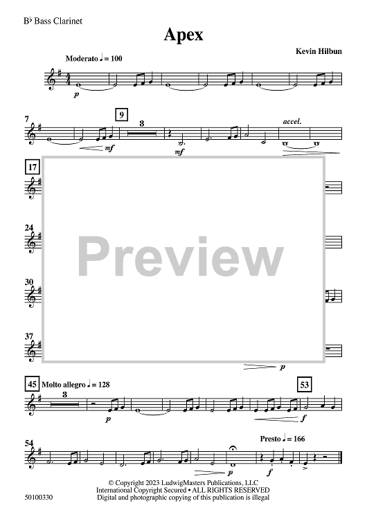 Digital Sheet Music for Apex - Bb Bass Clarinet by Kevin Hilbun scored for Concert Band; id:510048