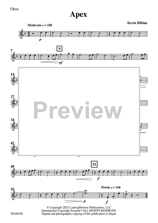 "Apex - Oboe" Sheet Music by Kevin Hilbun