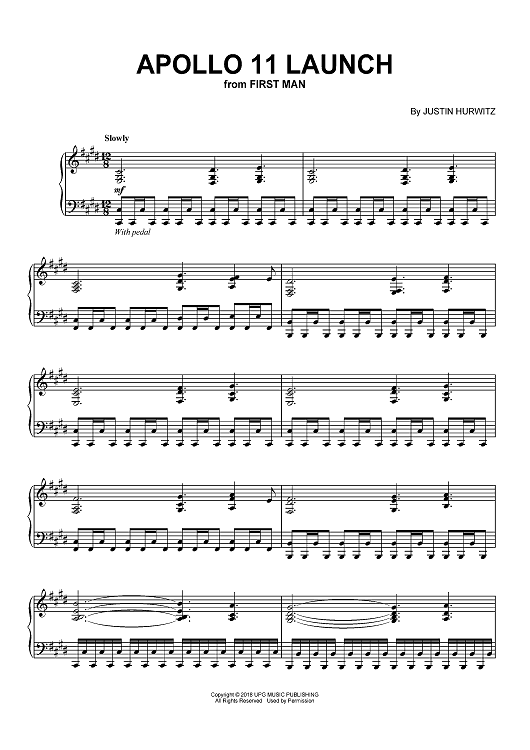 Digital Sheet Music for Apollo 11 Launch - from First Man by Justin Hurwitz scored for Piano Solo; id:466930