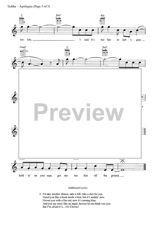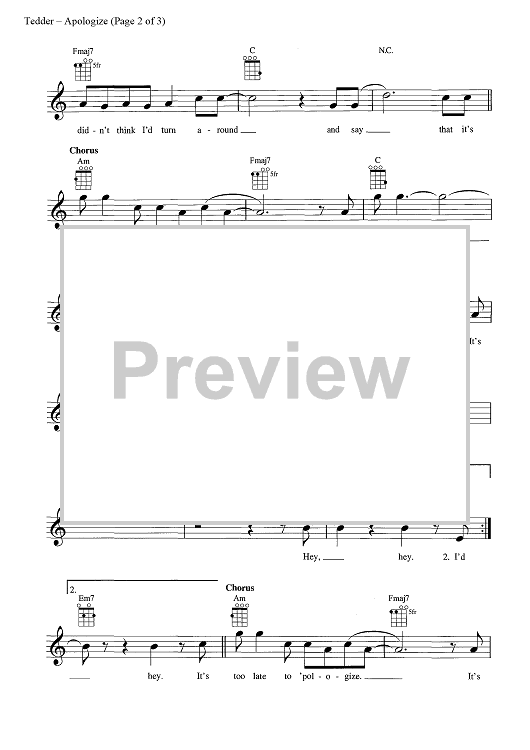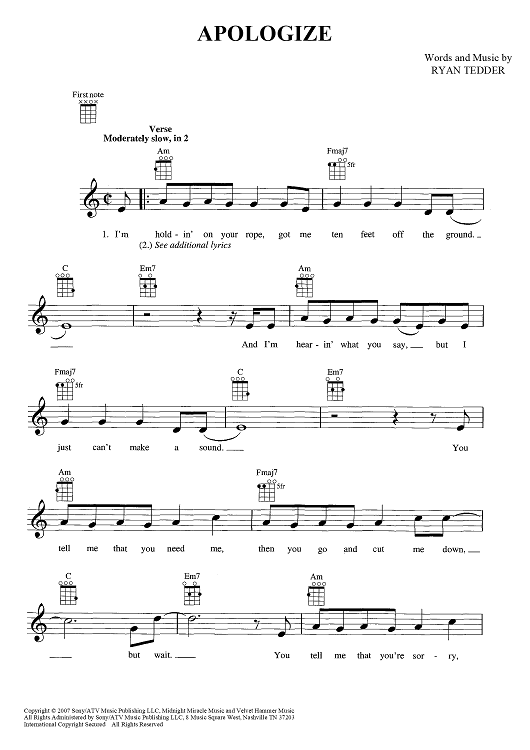 Digital Sheet Music for Apologize by Ryan Tedder, OneRepublic scored for Ukulele/Vocal; id:444714