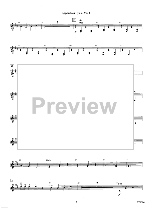 Digital Sheet Music for Appalachian Hymn - Violin 2 by Soon Hee Newbold scored for String Orchestra; id:440872