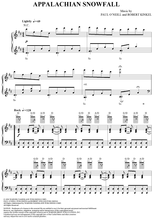 Digital Sheet Music for Appalachian Snowfall by Trans-Siberian Orchestra, Paul O'Neill, Robert Kinkel scored for Piano Solo; id:253005