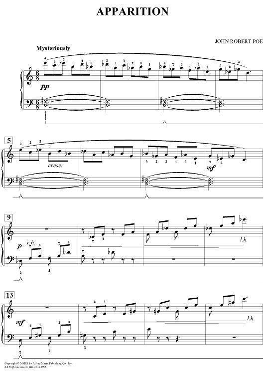 Digital Sheet Music for Apparition by John Robert Poe scored for Piano; id:464258