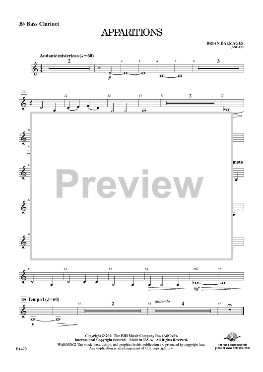 Digital Sheet Music for Apparitions - Bb Bass Clarinet by Brian Balmages scored for Concert Band; id:425664