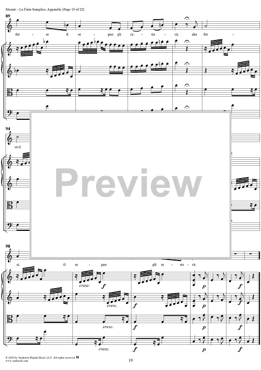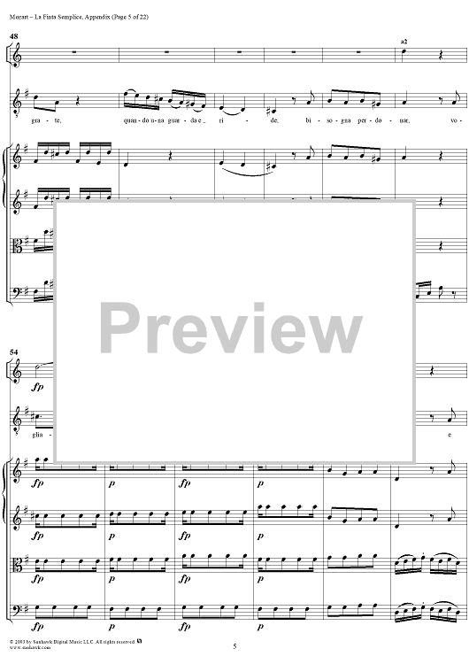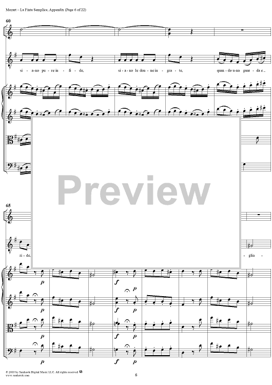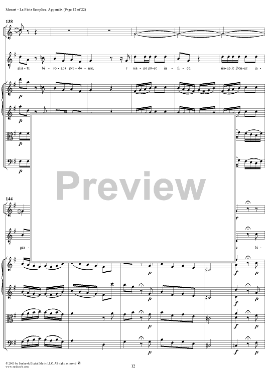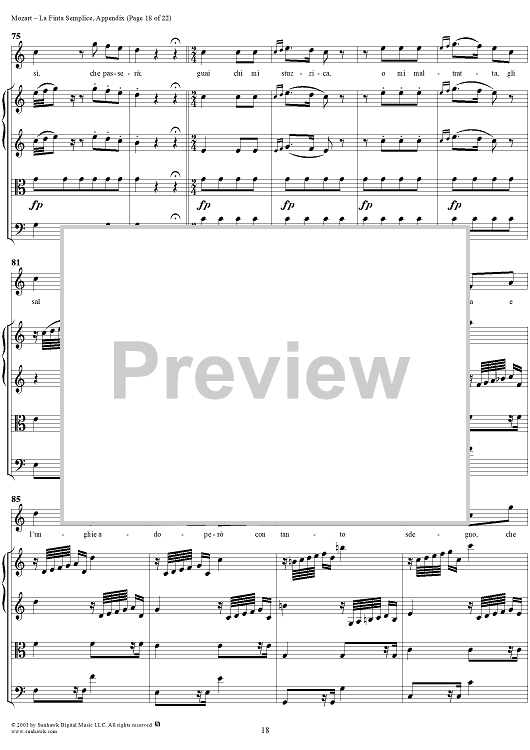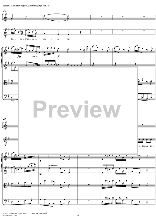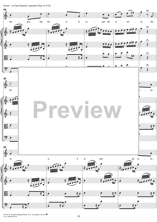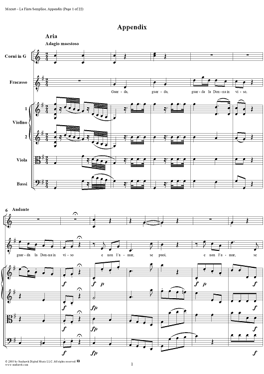 Digital Sheet Music for Appendix, from "La Finta Semplice", K46a (K51) - Full Score by Wolfgang Amadeus Mozart scored for Voice and Orchestra; id:291841