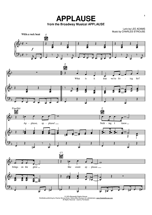 Digital Sheet Music for Applause by Charles Strouse, Lee Adams scored for Piano/Vocal/Chords; id:395903