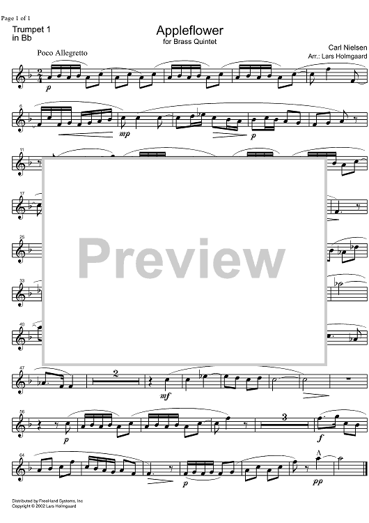 Digital Sheet Music for Appleflower - B-flat Trumpet 1 by , Lars Holmgaard, Carl Nielsen scored for Brass Quintet; id:332889