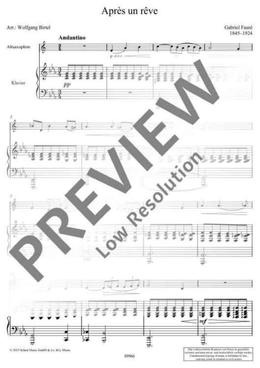 'Novelty of form, selected modulations, strange tone colours, the use of completely unexpected rhythms', this is how Camille Saint-Saëns praised the debut work of a young colleague and continued: 'Above everything is a charm that surrounds the whole work and makes the mass of average listeners accept the most surprising audacities as something entirely natural.' The First Violin Sonata by Gabriel Fauré (1845 1924) was, indeed, an extraordinary composition which, at the same time, opened the way for the oeuvre of one of the most important French composers in the late 19th century and early 20th century: It was particularly with songs and piano music that he could win the heart of the audience. In the 1870s Fauré wrote three songs which were originally not meant to be a unity, but were later assembled under opus number 7. The first song is 'Après un rêve', a romantic, rapturous song which, like a 'Song Without Words' by Mendelssohn, is perfect for making music with an accompanied solo instrument.