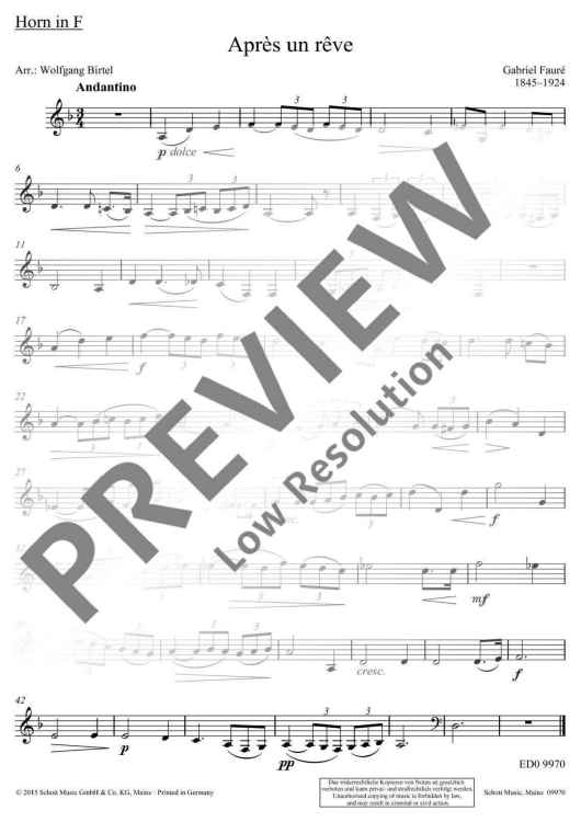 "Apres Un Reve" Sheet Music by Gabriel Fauré
