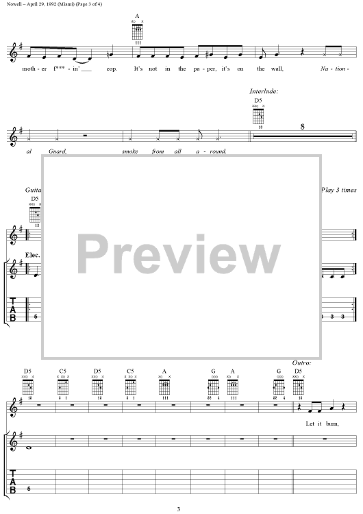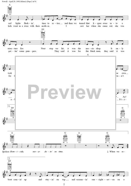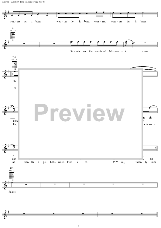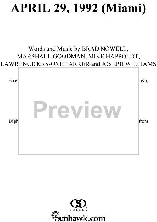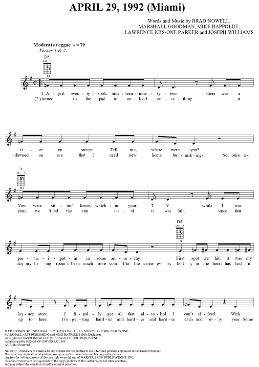 Digital Sheet Music for April 29, 1992 (Miami) by Sublime, Joseph Williams, Brad Nowell, Marshall Goodman, Mike Happoldt, Lawrence Krs-One Parker scored for Easy Guitar/Vocal; id:289678