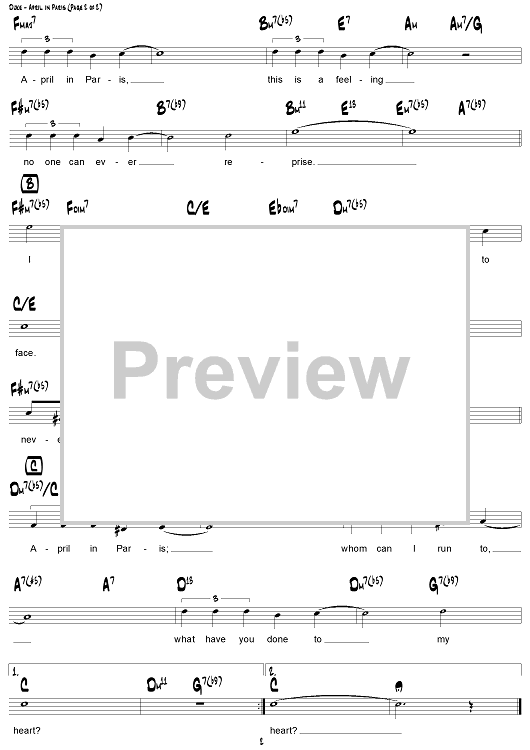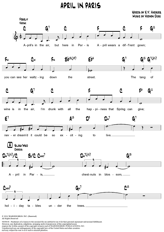Digital Sheet Music for April in Paris by Count Basie, E.Y. "Yip" Harburg, Vernon Duke scored for Lead Sheet; id:312170
