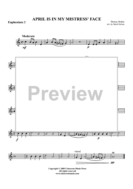 "April Is In My Mistress' Face - Euphonium 2 BC/TC" Sheet Music by Thomas Morley