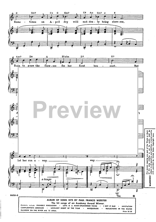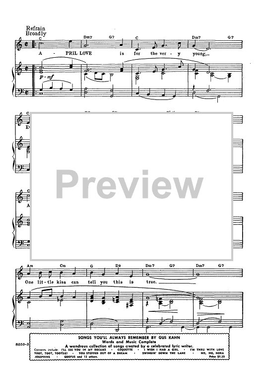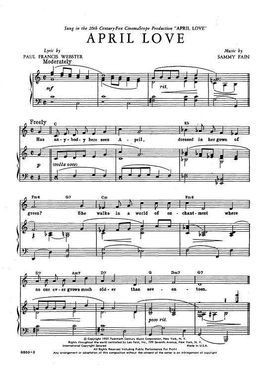 Digital Sheet Music for April Love by Sammy Fain, Paul Francis Webster, Pat Boone scored for Piano/Vocal/Chords; id:433103