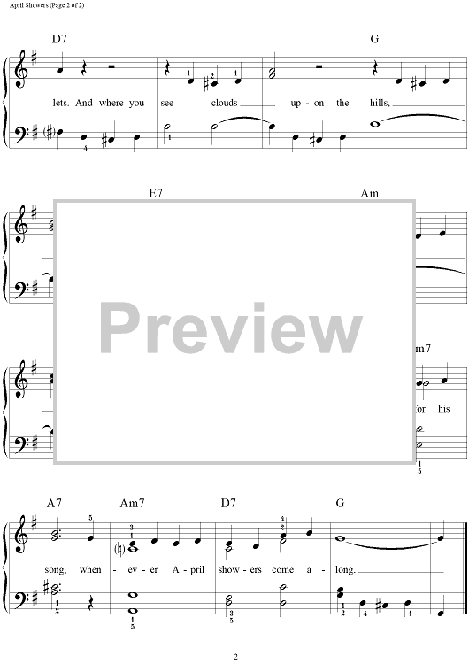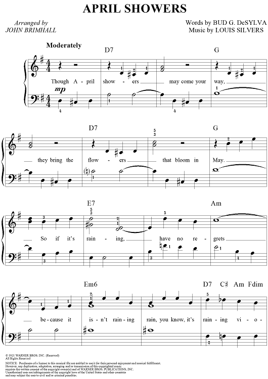Digital Sheet Music for April Showers by Al Jolson, Bugs Bunny, Louis Silvers, John Brimhall, Buddy DeSylva scored for Easy Piano/Vocal/Chords; id:236754