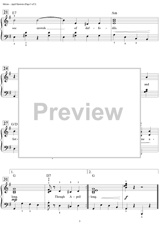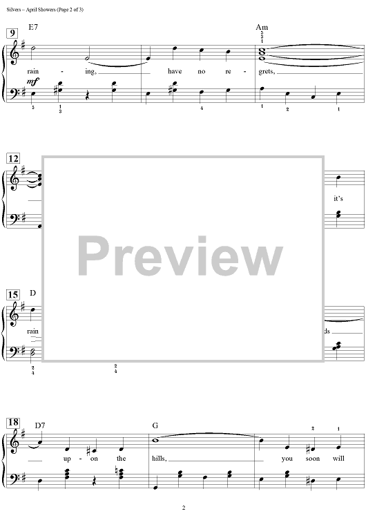 Digital Sheet Music for April Showers by Dan Coates, Louis Silvers, Buddy DeSylva scored for Easy Piano/Vocal/Chords; id:456400