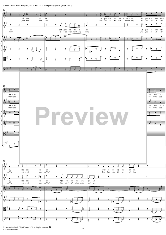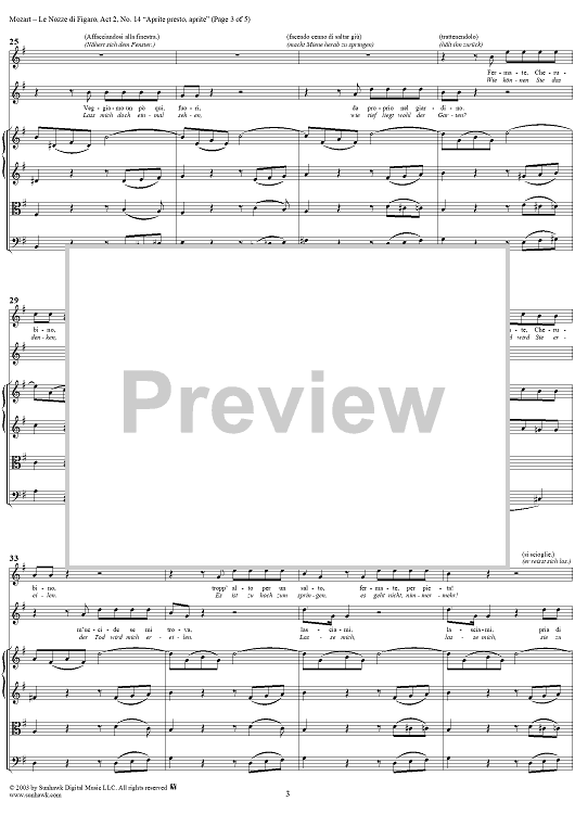 Digital Sheet Music for "Aprite presto, aprite", No. 14 from "Le Nozze di Figaro", Act 2, K492 - Full Score by Wolfgang Amadeus Mozart scored for Voice and Orchestra; id:292207