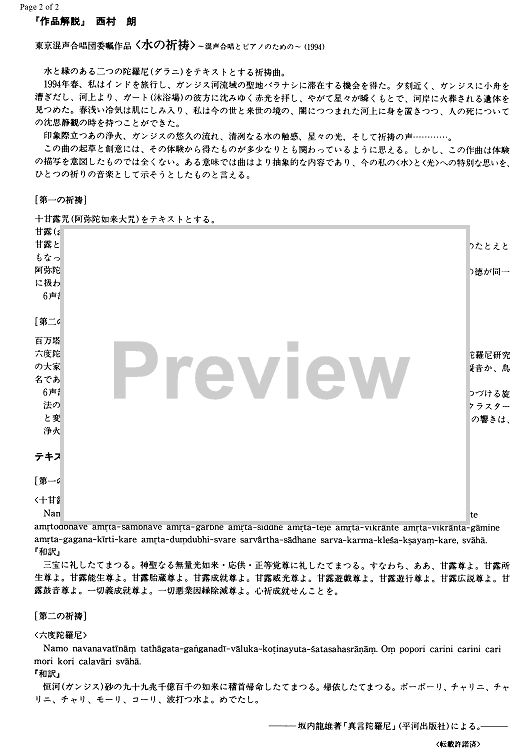 "Aqua invocation - Preface" Sheet Music by Akira Nishimura