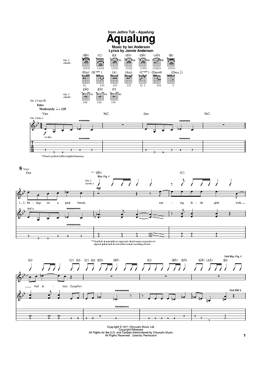Digital Sheet Music for Aqualung by Ian Anderson, Jennie Anderson, Jethro Tull scored for Guitar Tab; id:381593