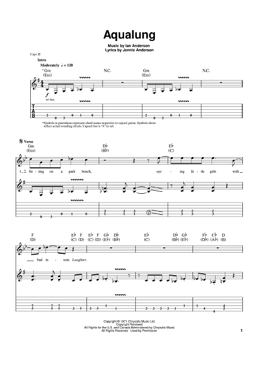 Digital Sheet Music for Aqualung by Ian Anderson, Jennie Anderson, Jethro Tull scored for Guitar Tab; id:383747