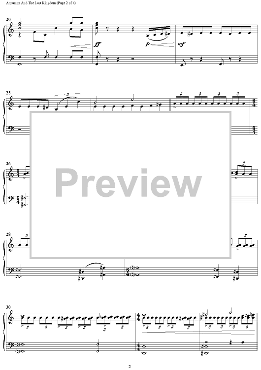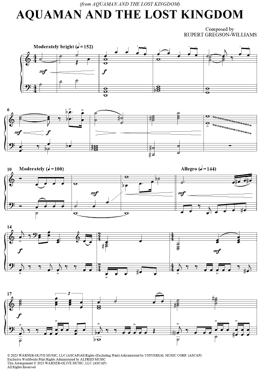 Digital Sheet Music for Aquaman And The Lost Kingdom by Rupert Gregson-Williams scored for Piano Solo; id:501427