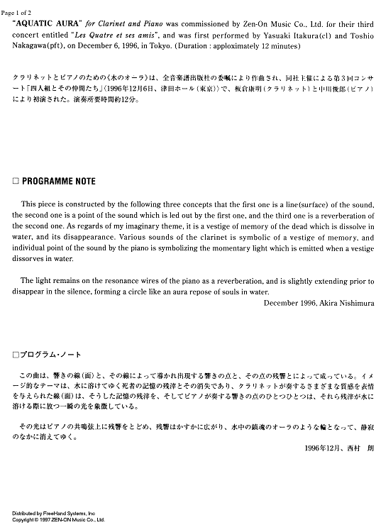 "Aquatic aura - Preface" Sheet Music by Akira Nishimura