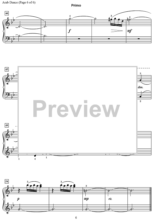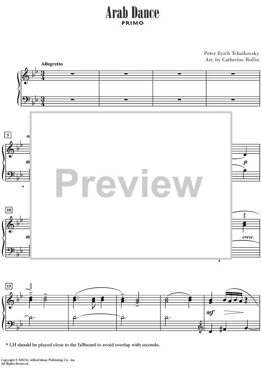 "Arab Dance" Sheet Music by Peter Ilyich Tchaikovsky