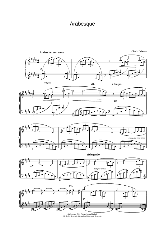 Digital Sheet Music for Arabesque by Claude Debussy scored for Piano; id:378799
