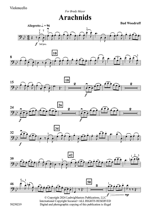 "Arachnids - Violoncello" Sheet Music by Bud Woodruff