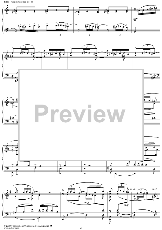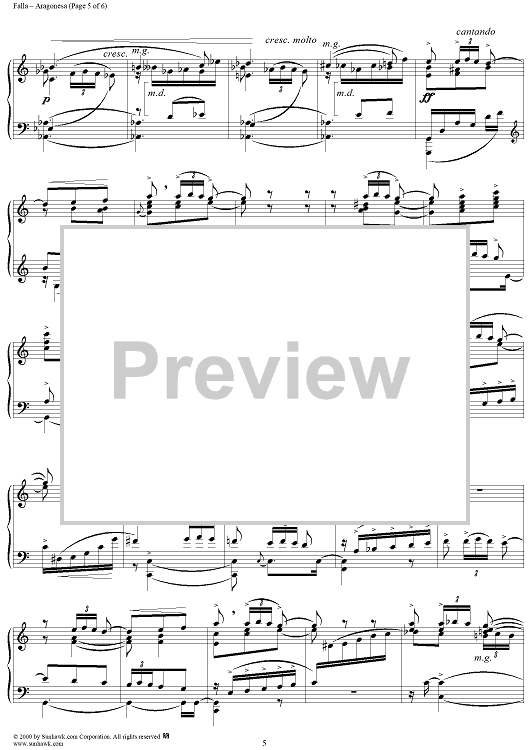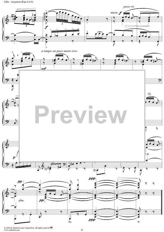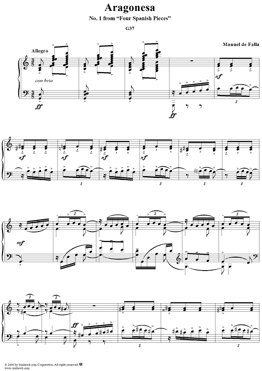 Digital Sheet Music for Aragonesa No. 1 from "Four Spanish Pieces", G37 by Manuel De Falla scored for Piano Solo; id:256200