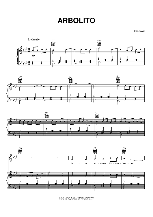 Digital Sheet Music for Arbolito by Traditional scored for Piano/Vocal/Chords; id:369820