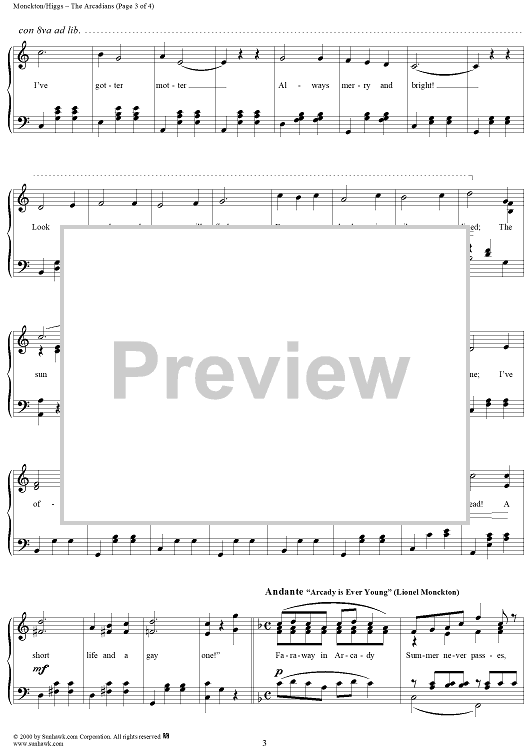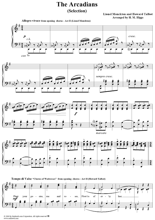 Digital Sheet Music for Arcadians, The (Selection) by Lionel Monckton, Howard Talbot scored for Piano Solo; id:252569