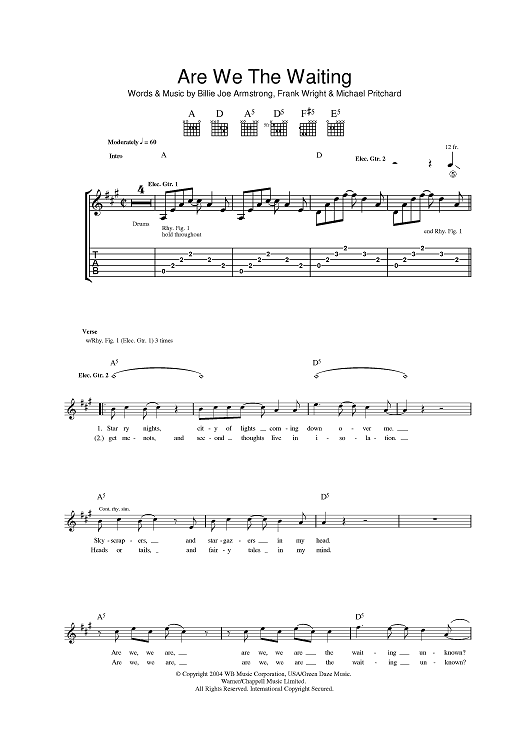 Digital Sheet Music for Are We The Waiting by Billie Joe Armstrong, Michael Pritchard, Frank Wright, Green Day scored for Guitar Tab; id:395946