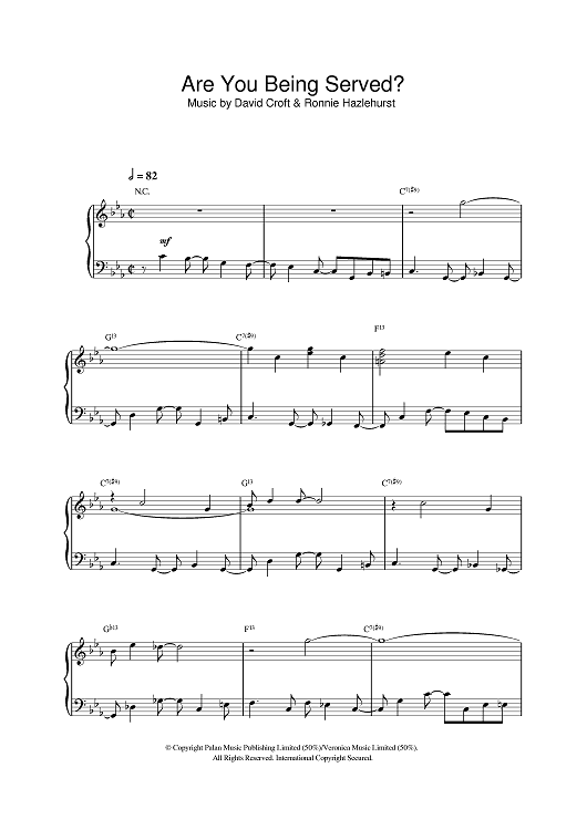 Digital Sheet Music for Are You Being Served? by David Croft, Ronnie Hazlehurst scored for Piano; id:386865